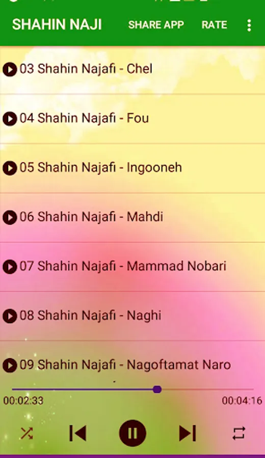 This program offers you all the exclusive songs of Shaheen Najafi without the Internet
