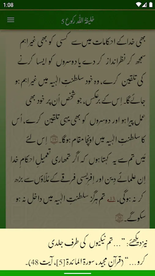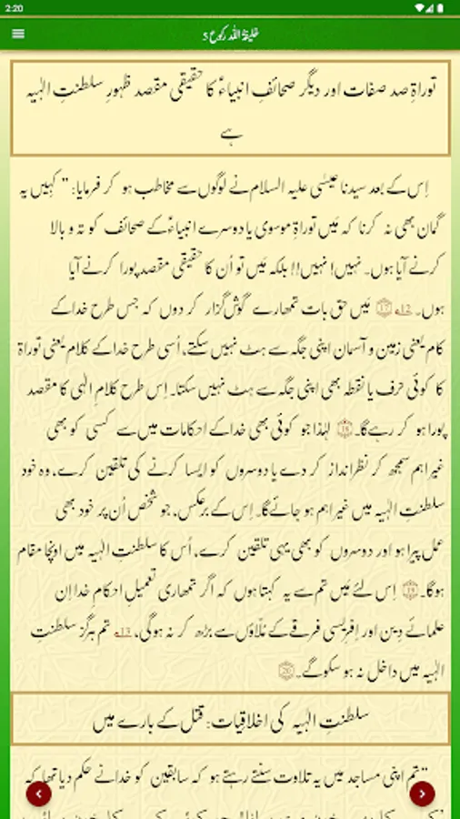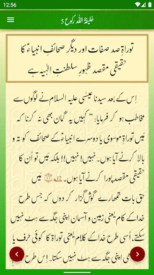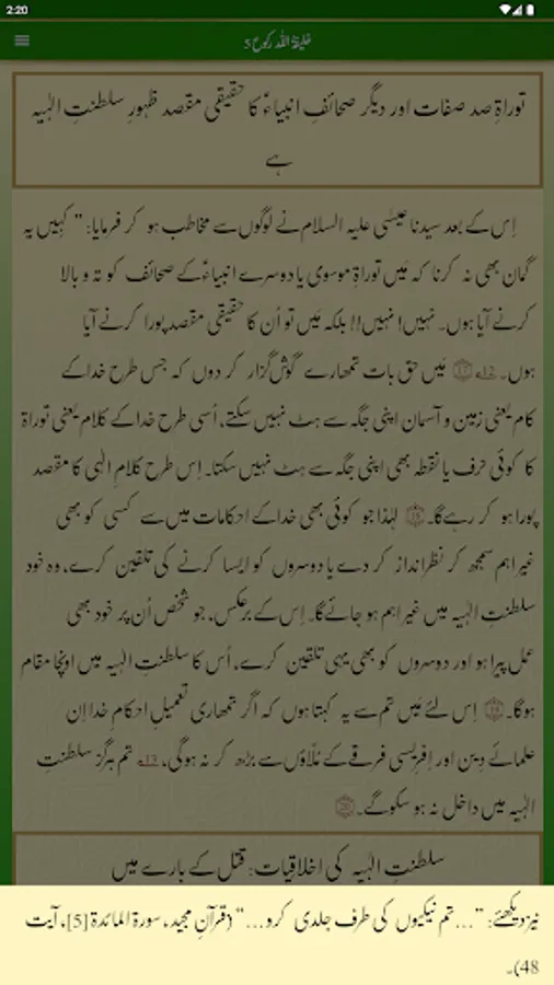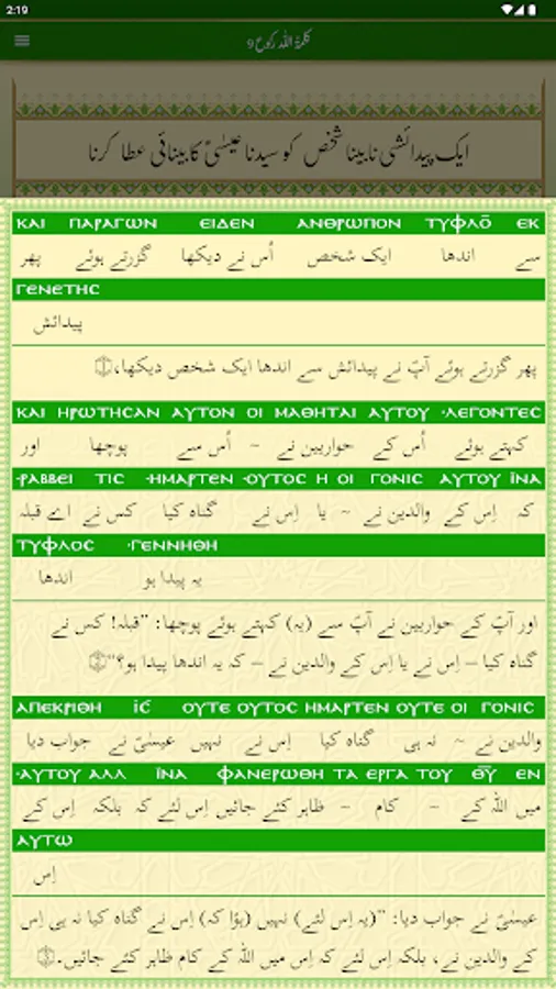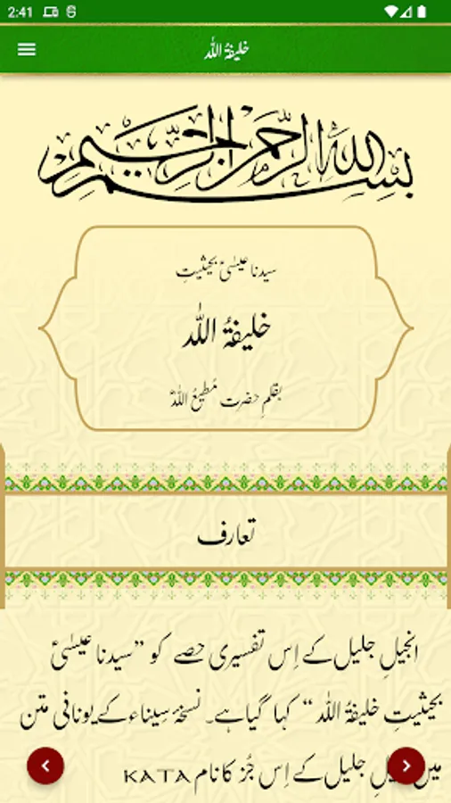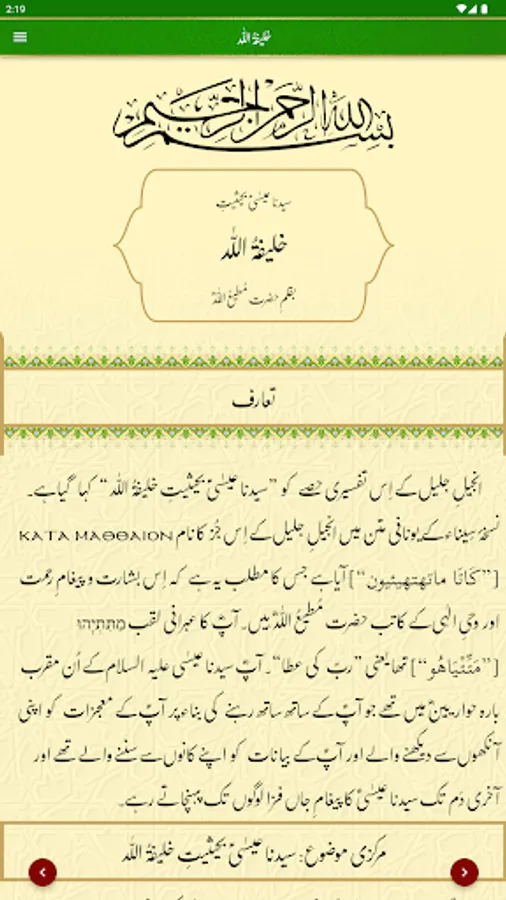 This Urdu app brings you the treasures of Tafsir-e-Injil-e-Jalil. This tafseer is the first major Urdu interpretation of the Injeel-e-Jaleel by Muslim scholars in over a century. It presents the original text of Codex Sinaiticus, the oldest known complete manuscript of the Injeel-e-Jaleel (ca. 4th century BH). It includes word-for-word translation, literal translation, meaning-based translation, cross references to Quran e Majeed ayat, explanatory notes, and helpful articles. This app gives you direct access to the text and meaning of the Injeel-e-Jaleel in beautiful, literary Urdu.