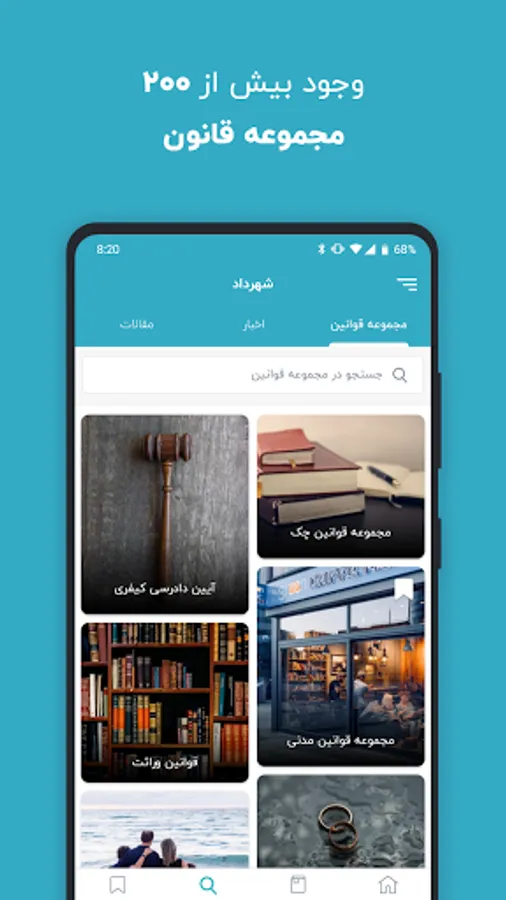 · جستجوی پیشرفته برای یافتن قانون حقوقی مورد نیاز در اپ حقوقی شهرداد