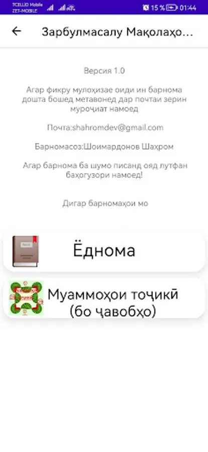 Зарбулмасалу Мақолаҳо (тоҷикӣ) Screenshots