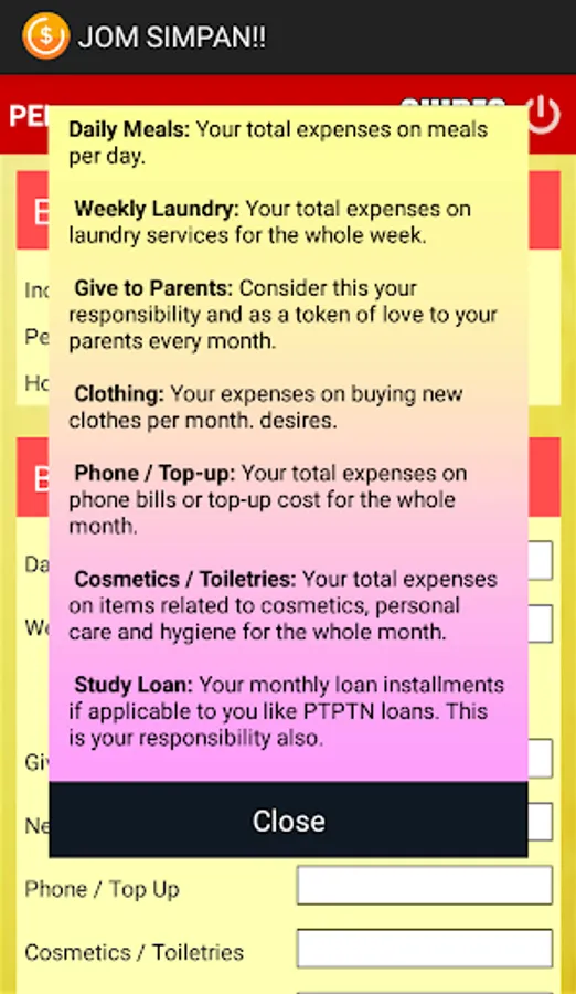 The JOM SIMPAN!! is designed to guide user to make a budget about their daily and monthly spending.Budgeting is the most basic and the most effective tool for managing our money.