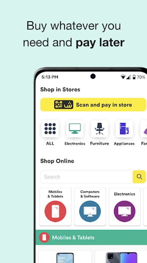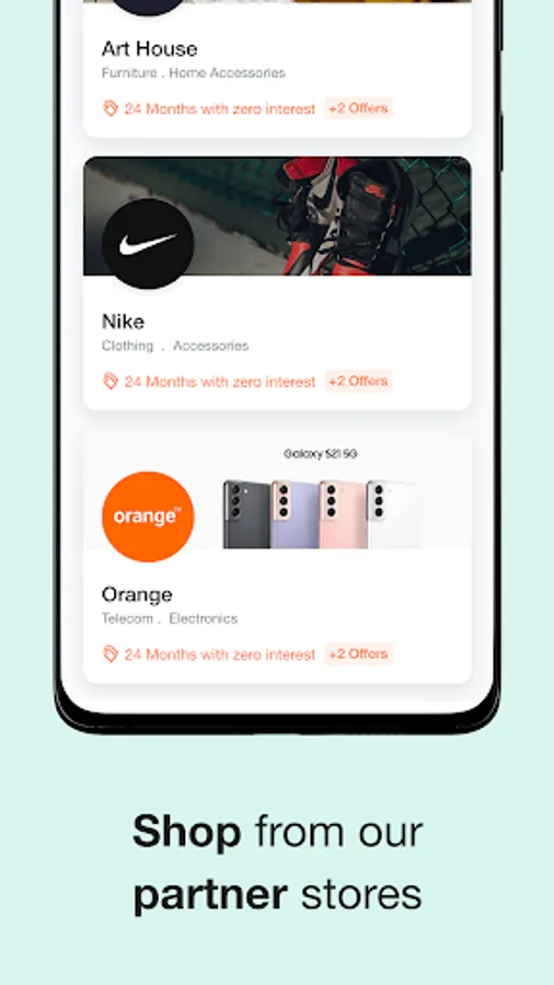 Download the app through Google PlayStore. Create an account and apply for credit. We will ask you to provide some information about yourself. After approval, your credit will be available on your app, and you can start shopping from thousands of products on Shahry. You can pay your monthly installments easily through your electronic wallet, Vodafone Cash, Fawry, Aman, Bee or through you credit/debit card.