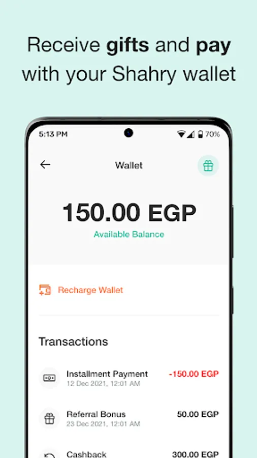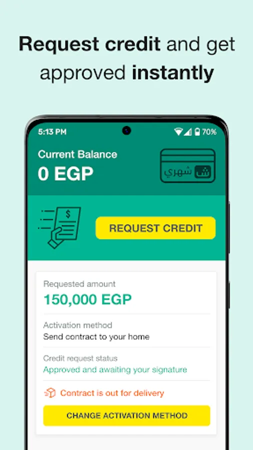 As soon as you receive credit on your app, click on 'Products', and choose from thousands of products available from partner stores. Add products to your basket, and place the order. After the order is confirmed, Shahry's partner store will deliver the product to your doorstep - cashless. You can pay your monthly installments easily through your electronic wallet, Vodafone Cash, Fawry, Aman, Bee or through you credit/debit card.