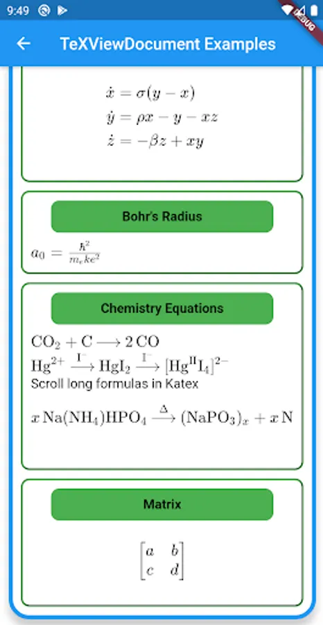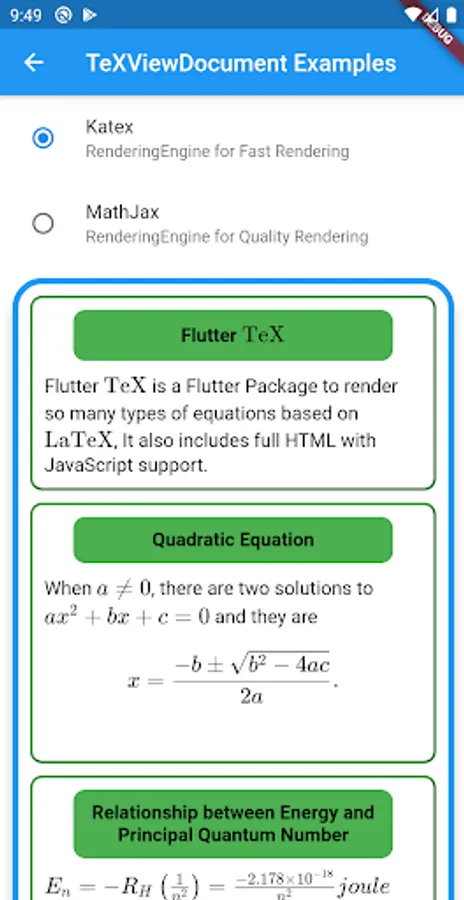 A Flutter Package (Demo Application) to render so many types of equations based on LaTeX, most commonly used are as followings: