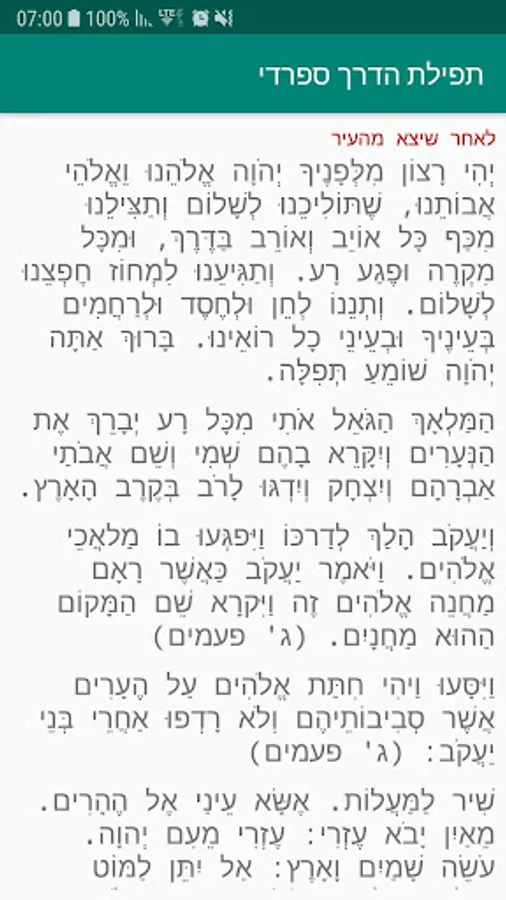 * Quick and easy access to the Traveler's Prayer Sfaradi