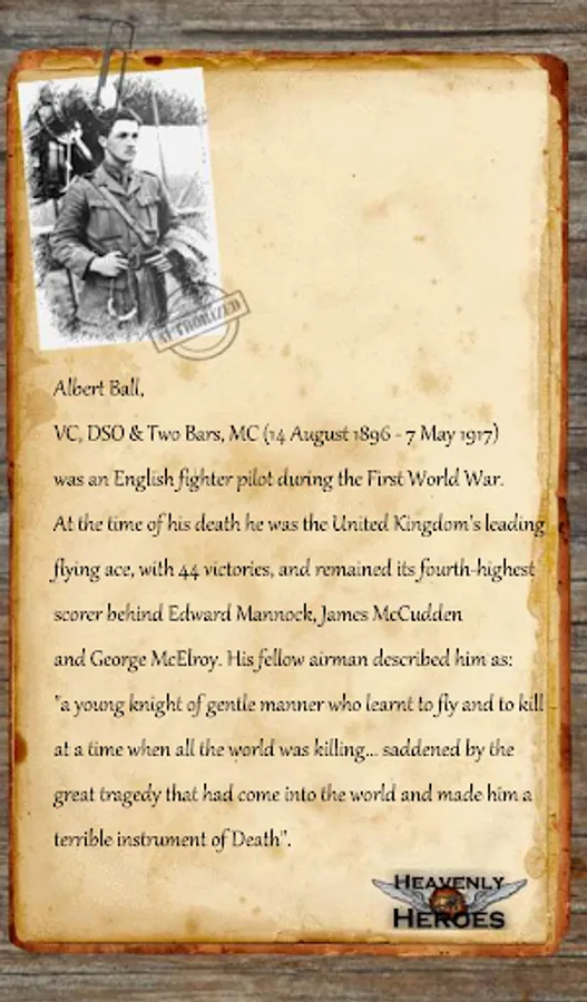 ✔ Heropedia - Read about most famous pilots, true knights of the sky, who lived bravely and fought gallantly in a Great War.