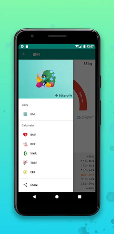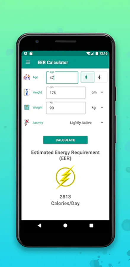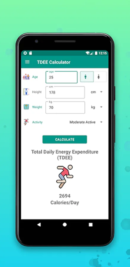 If your body mass index is calculated successfully, the app will also estimate your daily caloric need based on your stated activity level and sex.