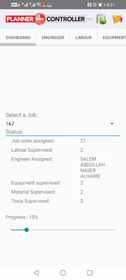 mobile app for Planner and Controller daily monitoring and daily activities, attendance and project picture uploading