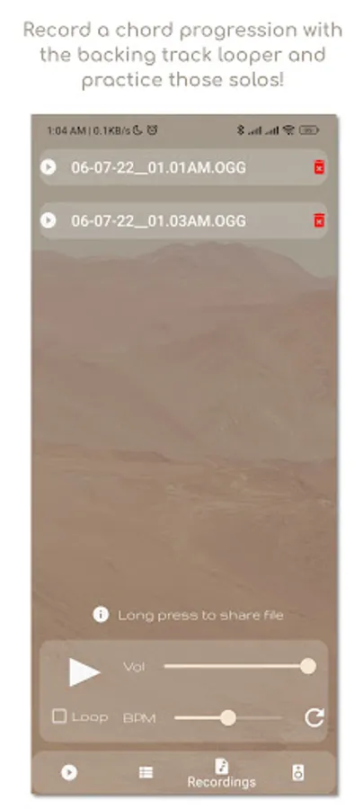 ✓ All new Backing Track player. Simply record some chords and use it on loop as a backing track! You can change BPM and Volume of the backing track. Perfect to practice solos or master scales