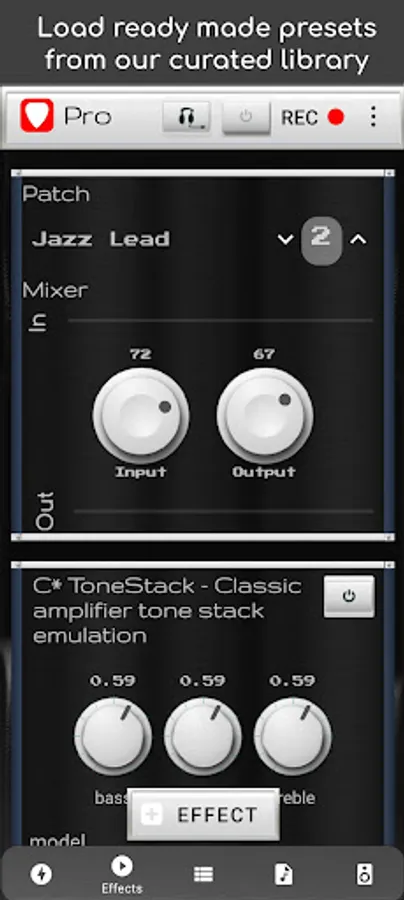 ✓ One click operation: add a new effect to the chain, or use presets created by professional guitarists for beautiful instant ready made tones for your tracks!