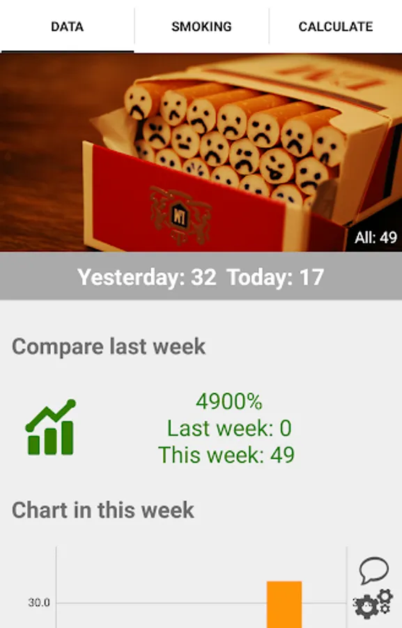 This app simply press the button on the app or press the button in notification when you smoke cigarettes, calculate your cigarettes's count and price automatically. (Notification button disable feature supported)