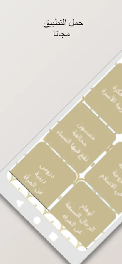 The application of written religious lessons for Muslim women contains religious lectures and lessons for women. It also provides an integrated set of religious lessons for Muslim women, written and short, and contains a lot of important advice and wisdom in life.