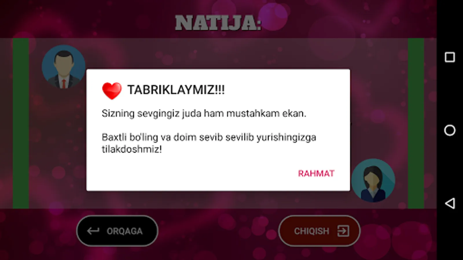 Sevgi testi dasturini yuklab olish orqali o'zingiz sinab ko'rish imkoniga egasiz.