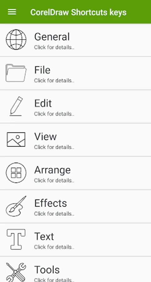 CorelDraw Shortcut Keys is best educational free application currently available on play store for android devices.