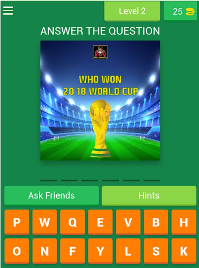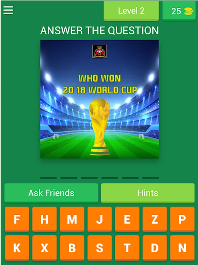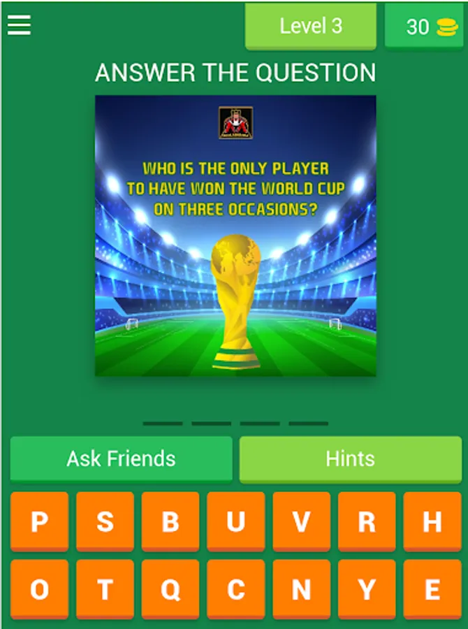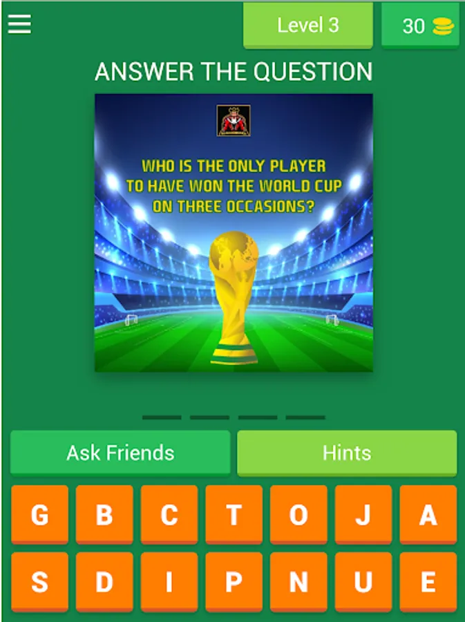 In this football trivia game, we have a lot of different type of football questions (soccer question) for you. Here you can guess football players pics (soccer player pics), football clubs logo, football teams logo, soccer world cup questions, etc.