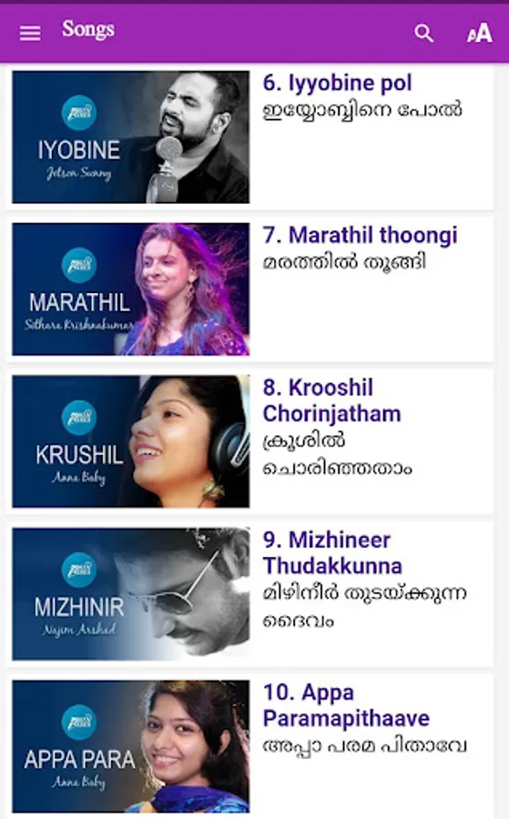 Featured Instrumentalists : Sitar - Krishnakumar , Strings - Francis & Band / Tabala : Anandan , Veena : Biju Anamanada , Flute & Sax - Jossy Alappey , Bass Guitar - Jossy Kottayam / Recordist - Jisto George Geetham, Tom Cyriac Pattupetty