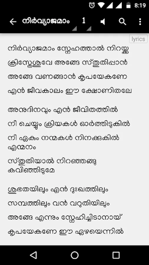 Shyju Mathew app features songs penned by Shyju Mathew. You can get the lyrics of his song from this app and at the same time listen to the songs.