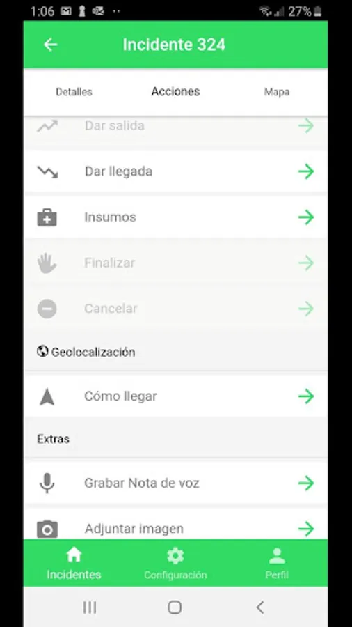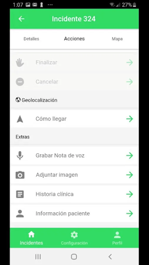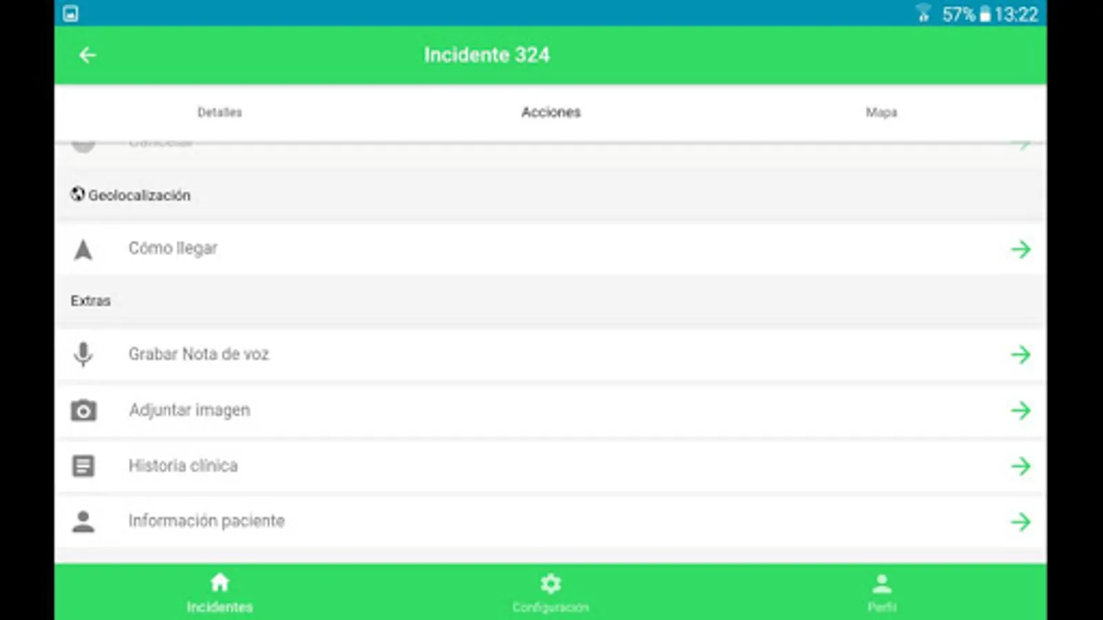 - Record the events in real time from the mobile (departure, arrival, referral, admission, end)