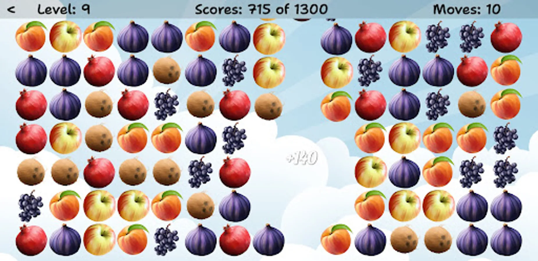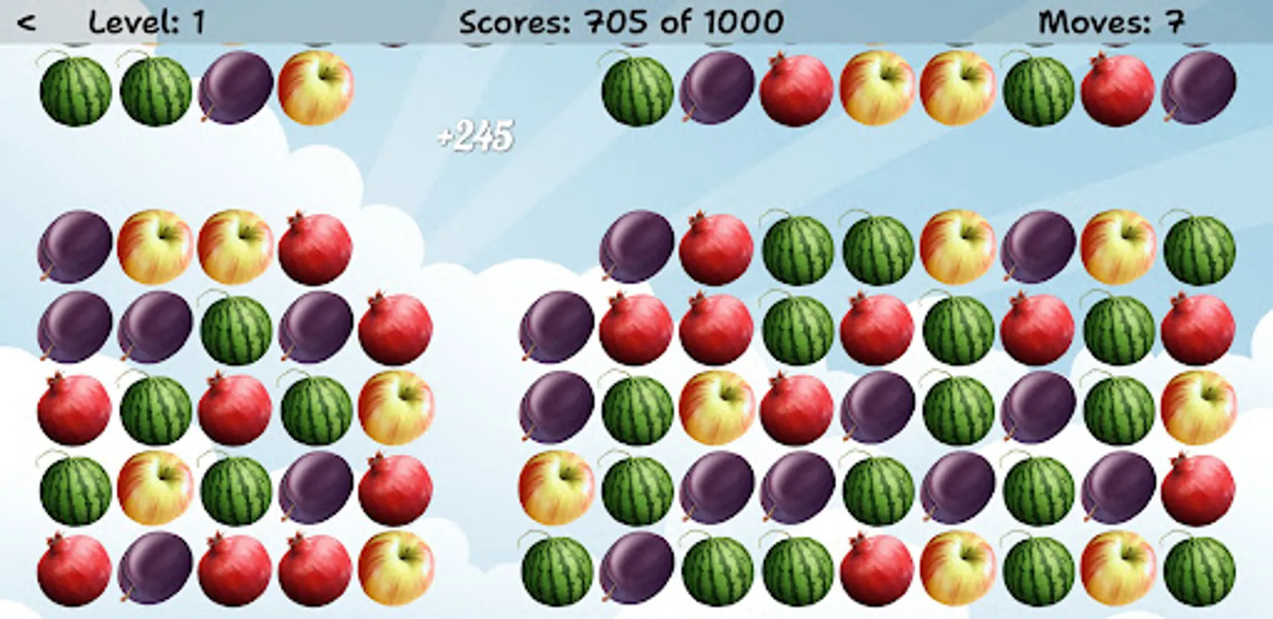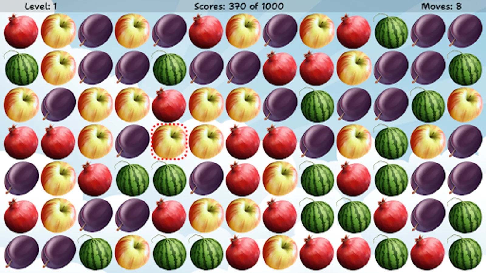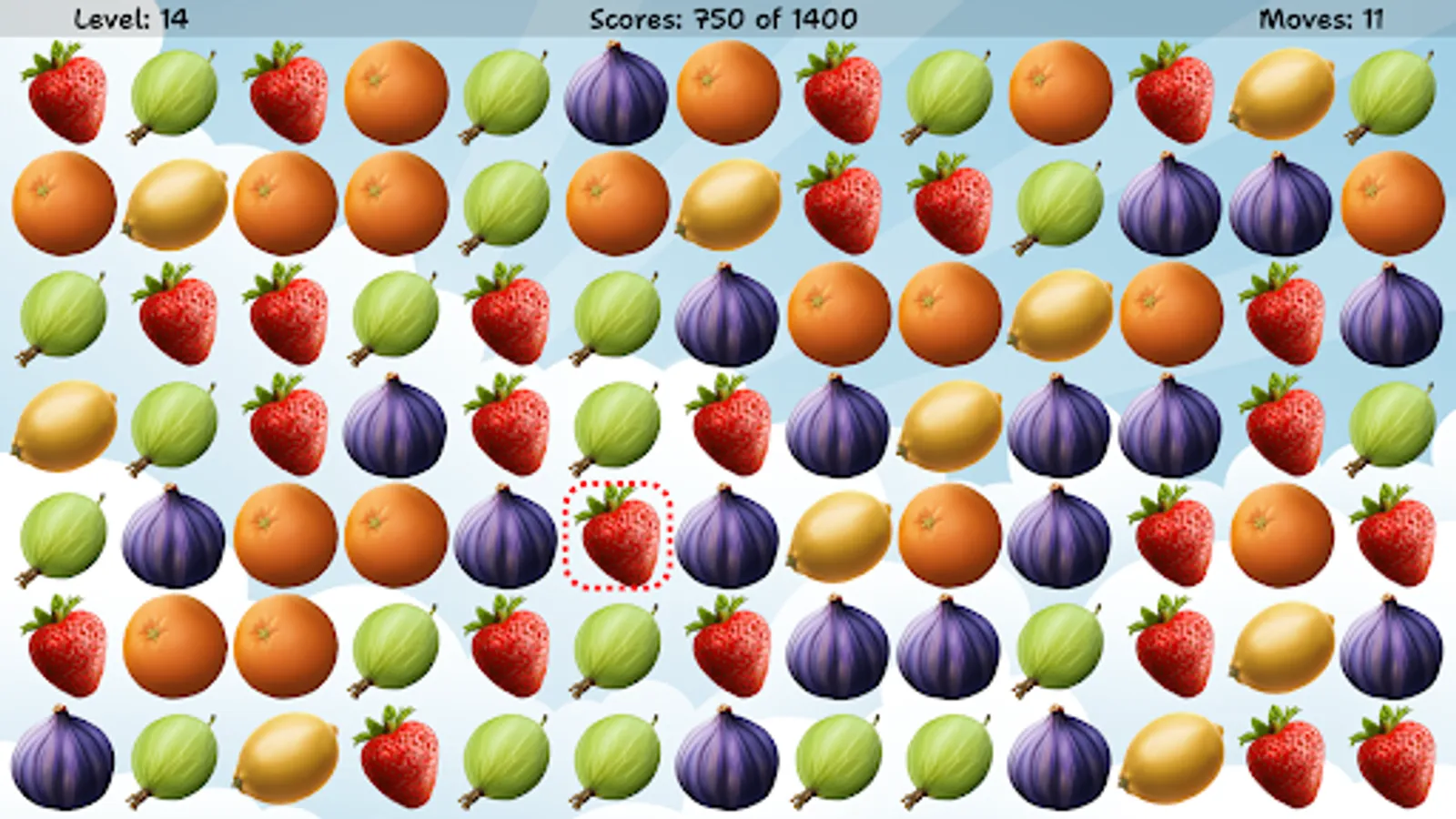 Swap two adjacent items in order to match 3 or more same fruits or berries in a row. As more elements are combined in one move, as more points you get!