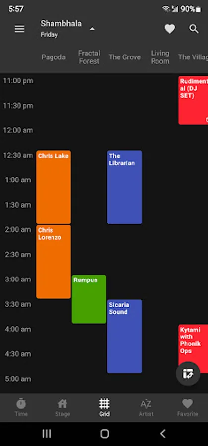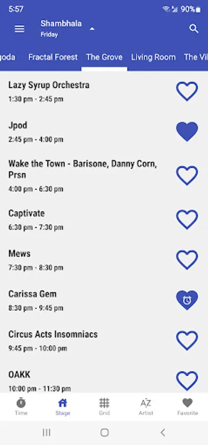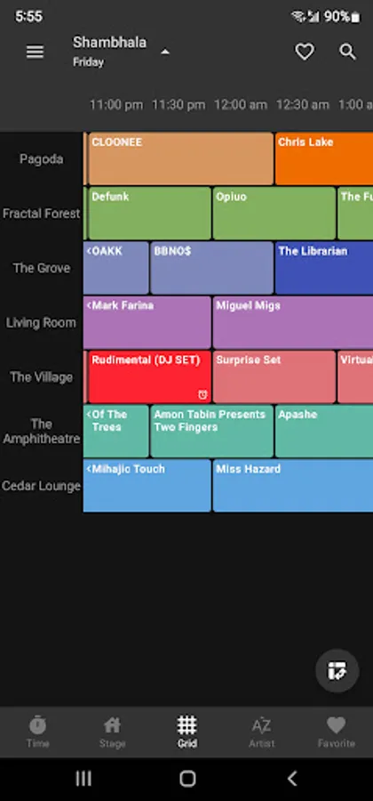 Schedules by Grid - Check the schedules out in a easy to read grid style, making it super easy to see schedule conflicts. Click the heart to only see your favourites, and during festival hours, press the now button to see only the currently playing artists.