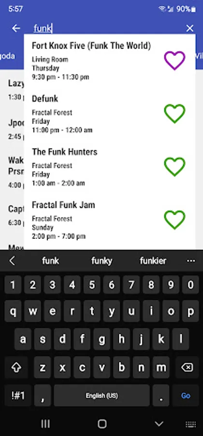 Search - From any page you can search for the artist by typing in their name. On all pages but the My Schedule page, clicking on the results will take you to the artist on that screen.