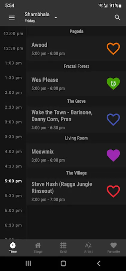 With ShambaTimes you have multiple ways to view and search the schedule and can easily favorite an artist with a simple tap. Don't miss that can't miss set! Set an alarm!