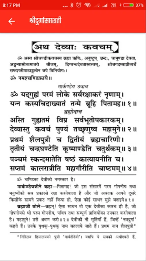 Important lessons have also been given at some places for the convenience of the readers. Several types of curses have been described. Armor, argala and kilak are also given meanings.