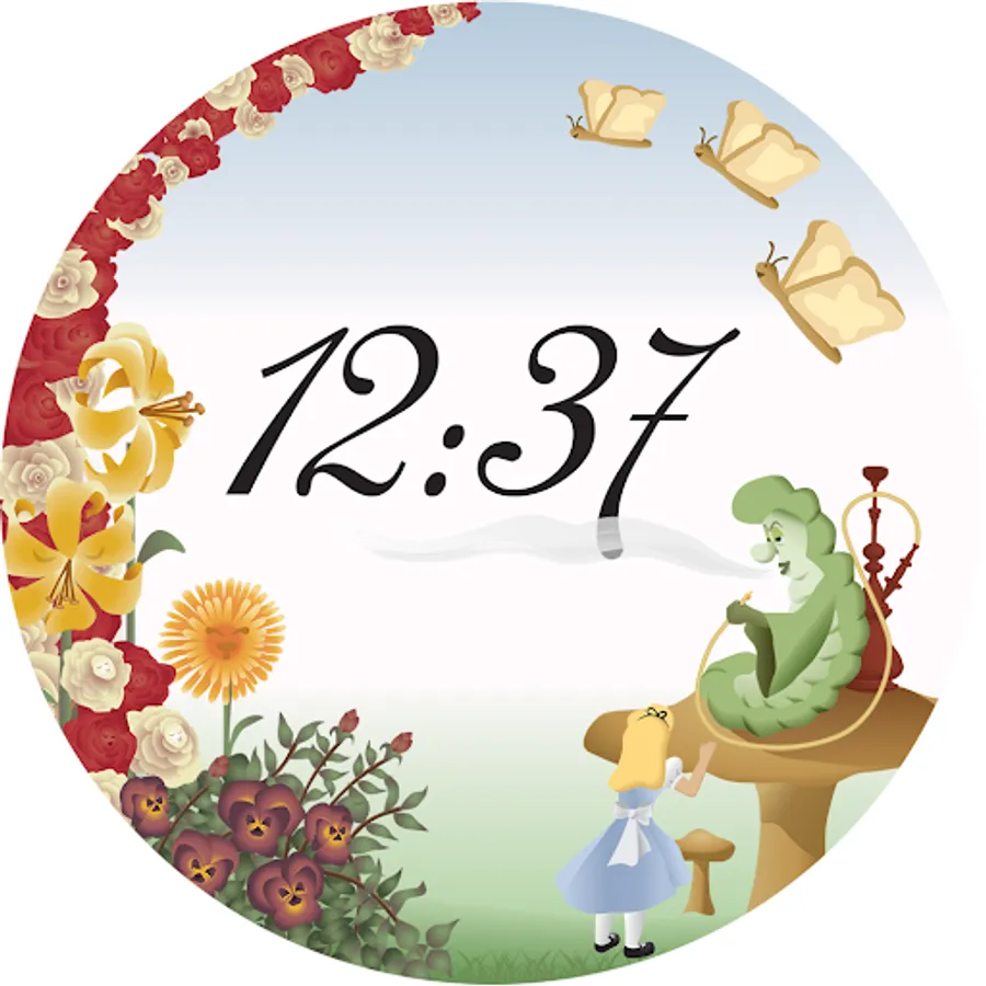 While in ambient mode, the watch displays the time with the mischievous grin of the cheshire cat. When you activate the watch, Wonderland pops into life as the caterpillar puffs on his hookah. The smoke will animate each time you look at the watch. This watch simply and artfully displays the time and your love of Alice in Wonderland.