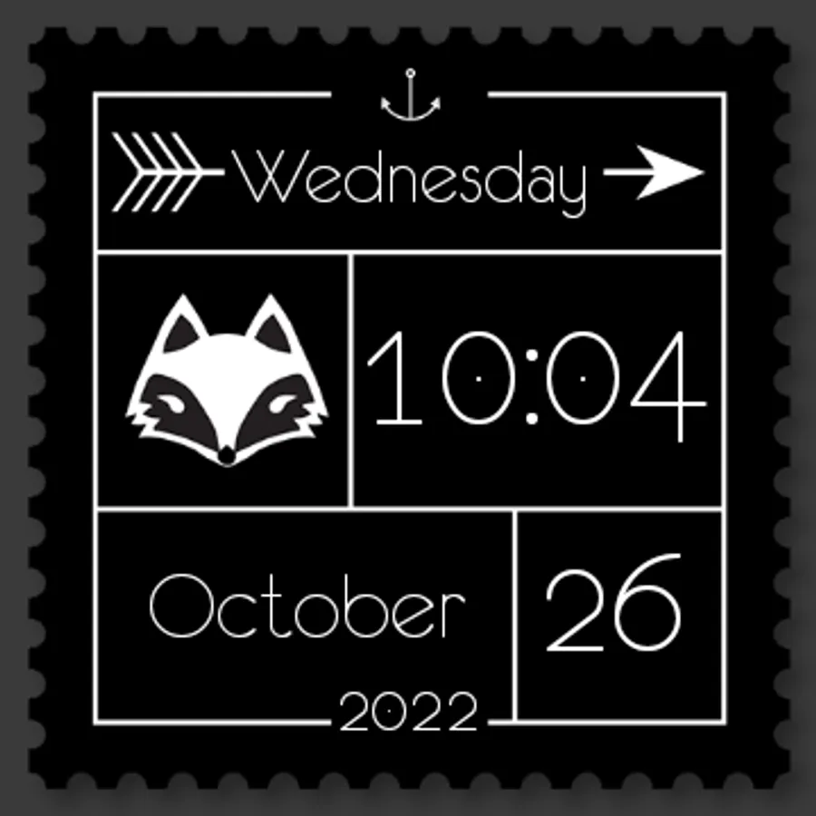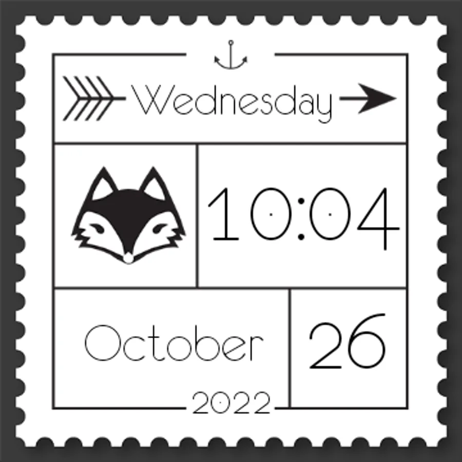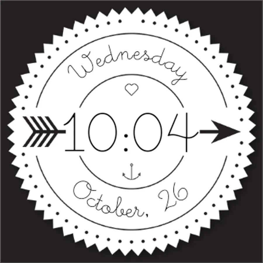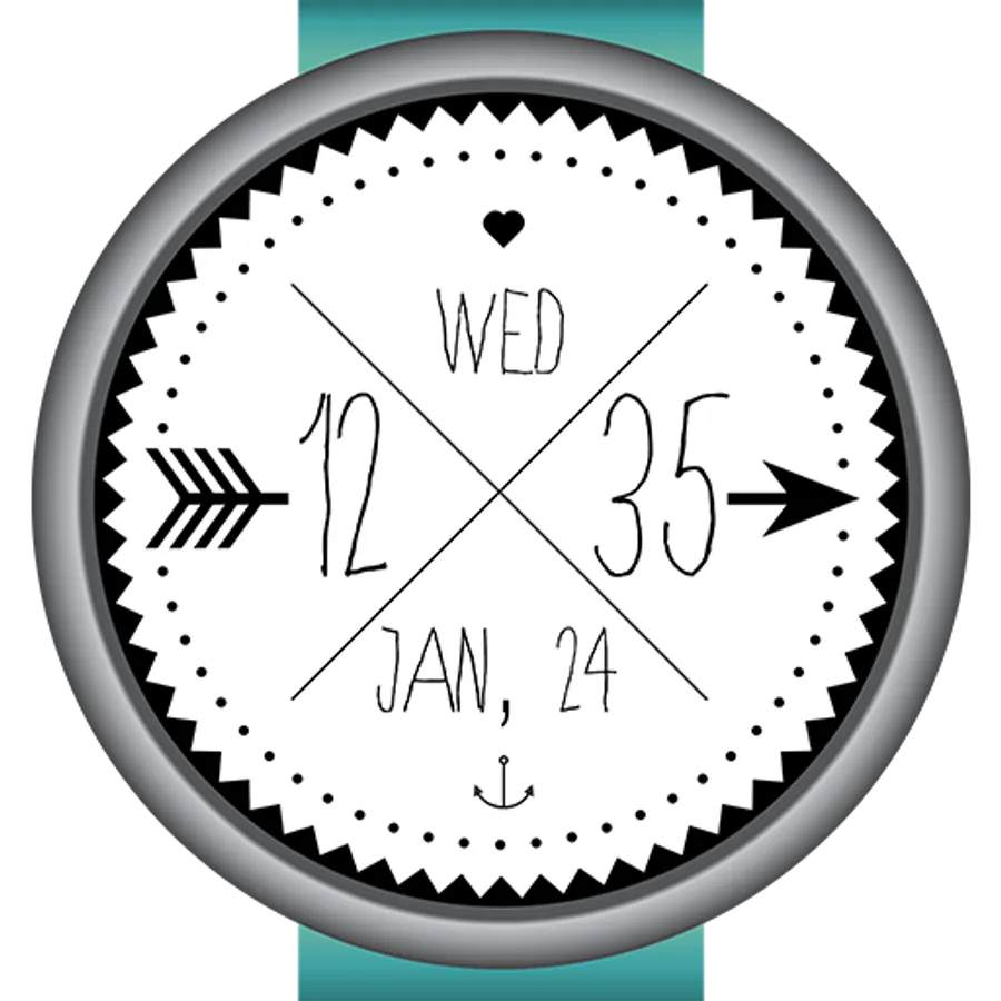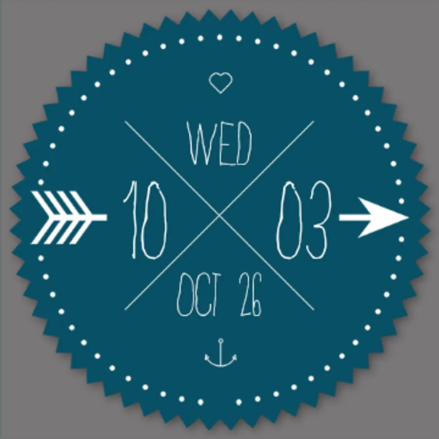 This beautiful watch face features the time, date and day artfully displayed for any android wear device. Show off your creative side with this unique clock. A ring of dots indicate the seconds while the hours and minutes are written out digitally.