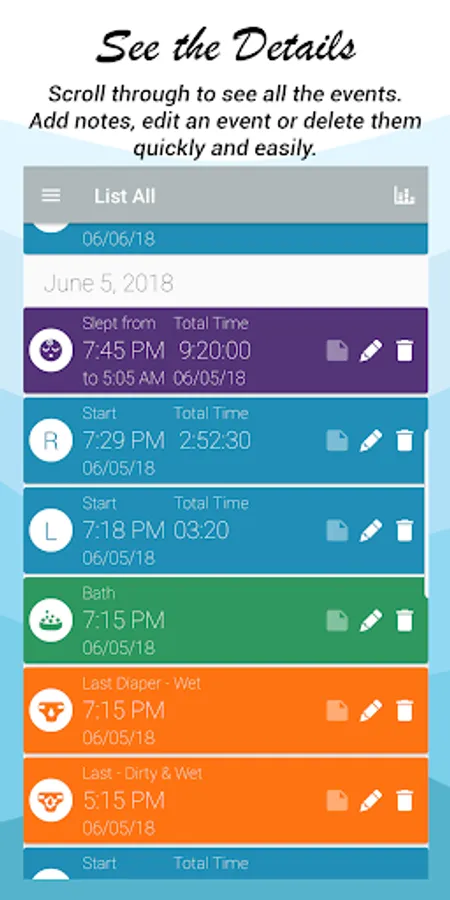 This simple, easy to use app will help even the most sleep deprived new parents. The next time your pediatrician asks how many wet or dirty diapers your baby has in 24 hours or how often the baby eats, you'll know right away. The chart will let you know at a glance if there's anything abnormal happening, such as a sudden increase or decrease in diapers or feedings that could signal an illness. Data saved in the cloud never gets lost and can be shared with other caregivers. With an Android Wear watch, you can instantly record activities without having to grab your phone - especially helpful while you're holding a fussy newborn ;-)