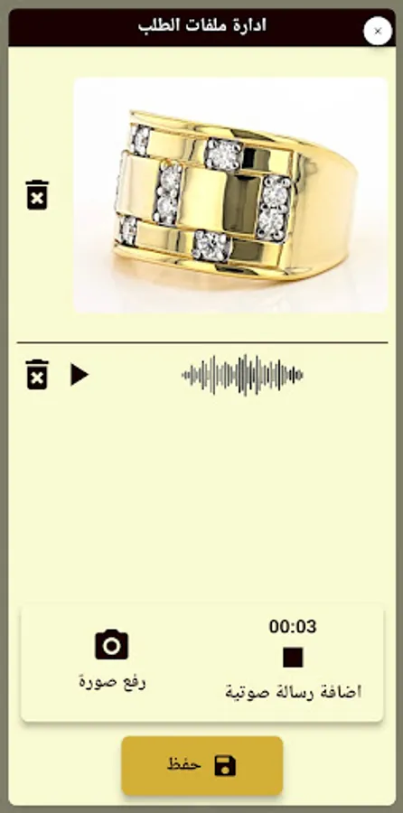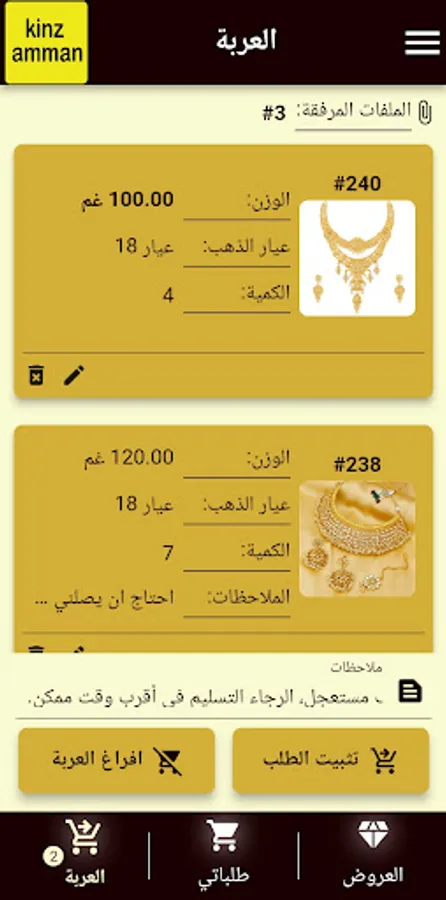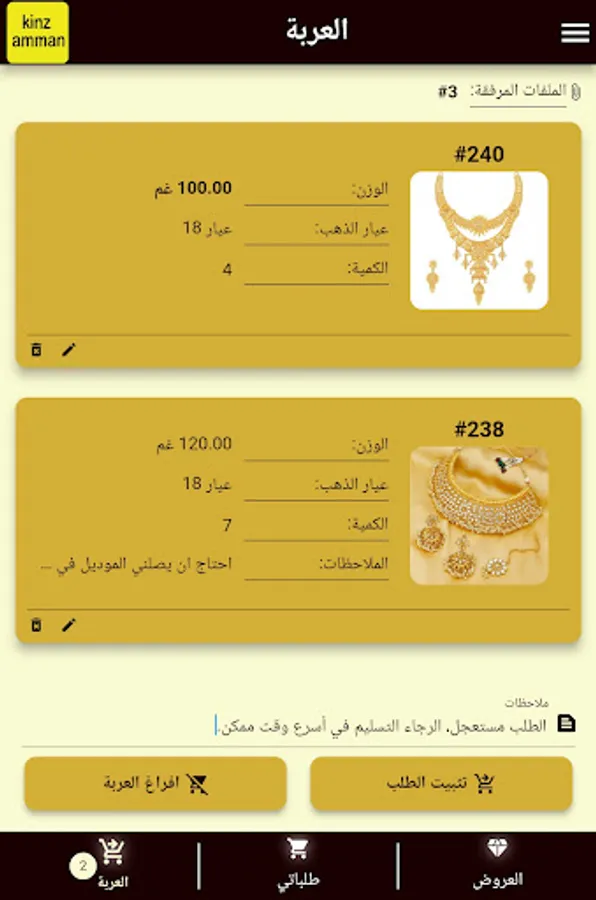 Private Application (needs predefined User Name and Password in order to work). Kinz Amman App allows you to view the Models of jewelry items designed by Kinz Amman Jewelry, add the desired models to cart and issue orders for these selected models, while taking into consideration specifying a screen where you can keep track of your issued orders’ statuses; kinz amman app allows you add as many attachments (Images and Audio Recordings) to each order before checking out; Also with kinz amman app you can filter the displayed Models and your issued Orders according to specific criteria so that you can view only items relevant to your search needs.