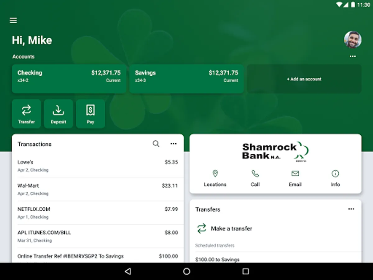 To use the Shamrock Bank Mobile app, you must be enrolled as a Shamrock Bank Internet Banking user. If you currently use our Internet Banking, simply download the app, launch it, and login with the same Internet Banking credentials.