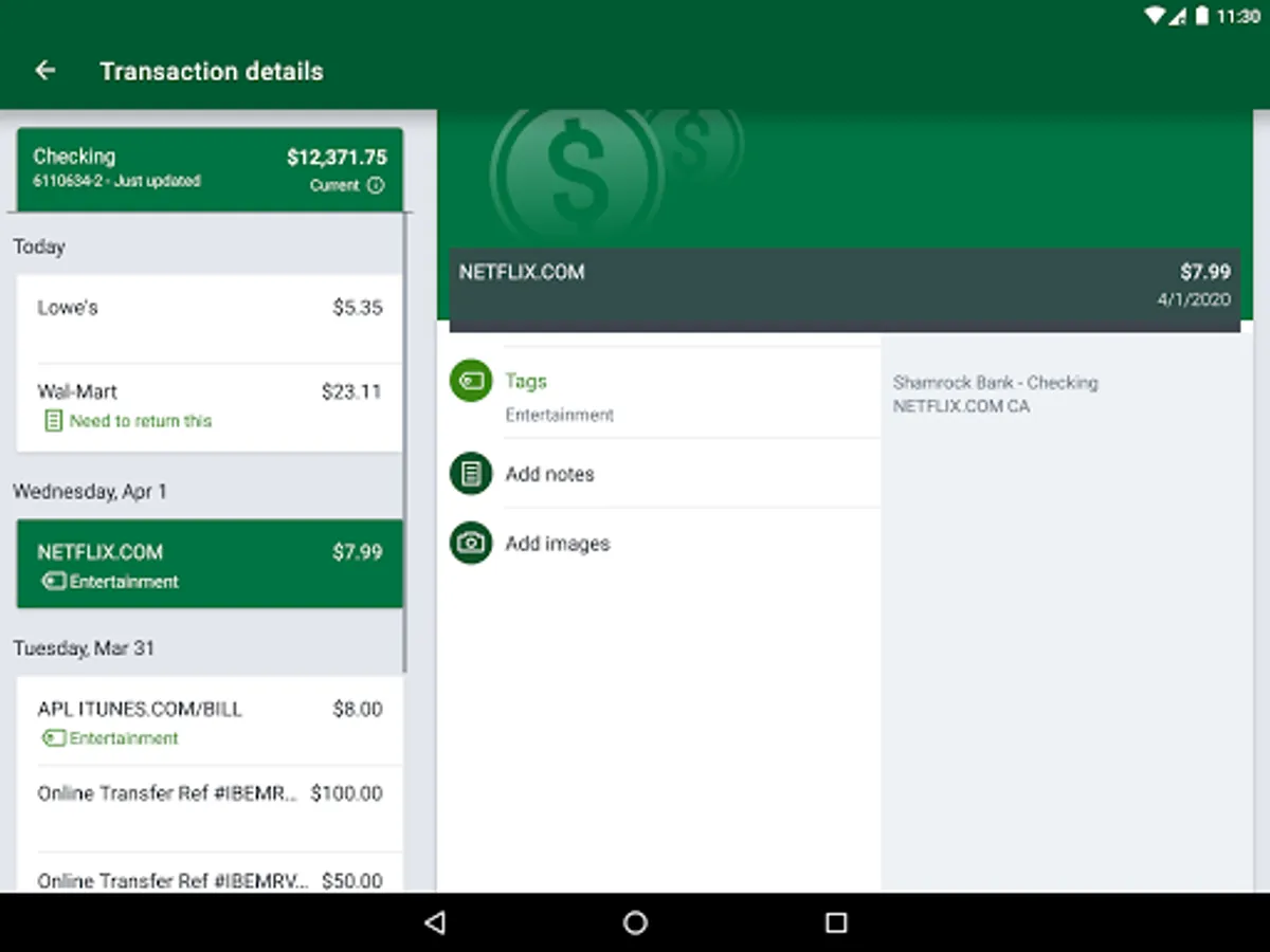 -Keep your transactions organized by allowing you to add tags, notes and photos of receipts and checks.