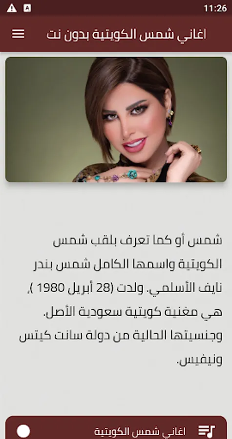 • Applying Kuwaiti Shams songs without the net is small in size and does not take a large place in the device