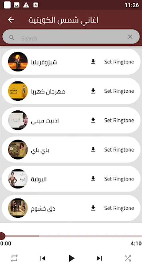5- You can put all the songs of Kuwaiti Shams as a ringtone for the phone