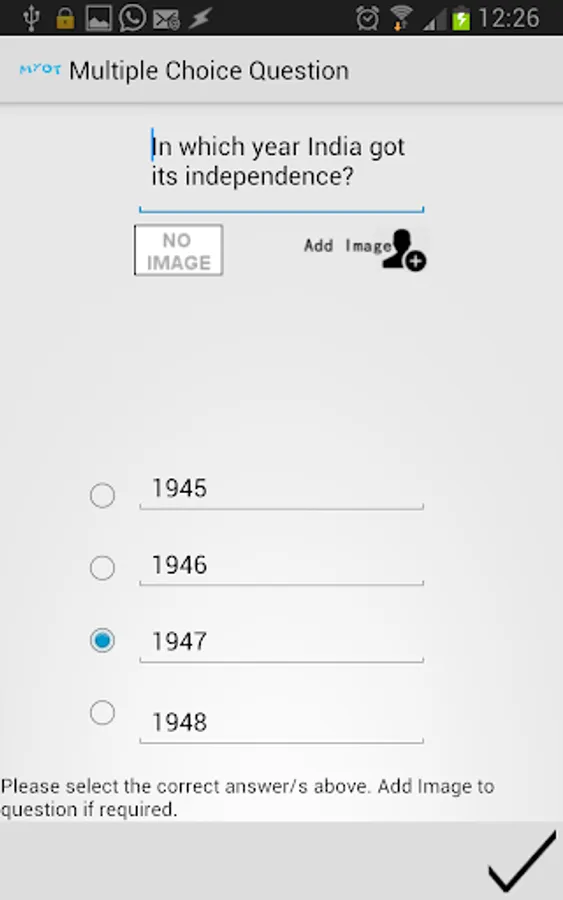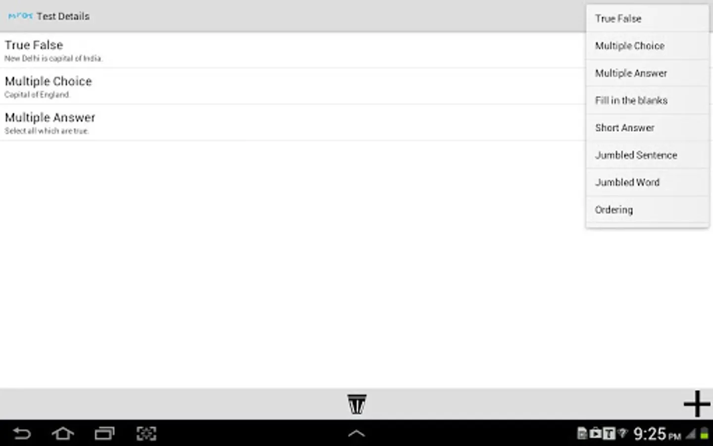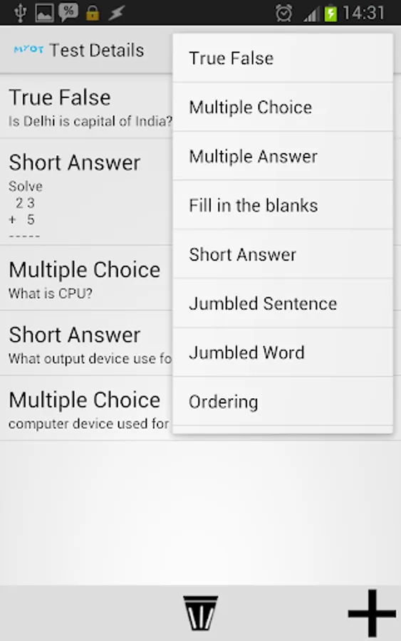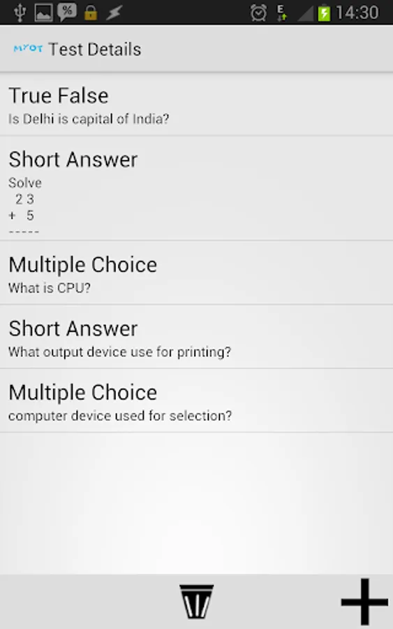 Simple UI makes application very easy to understand and useful. Teacher can create test with very basic steps. Once the test is ready, students can take the test with easy step by step process. Once the test is completed successfully, result is displayed to student.