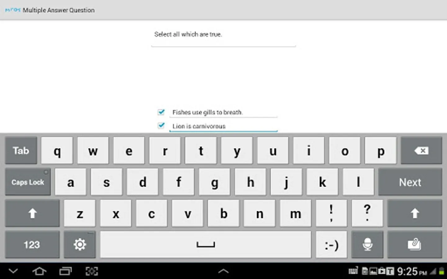 * Multiple Answer questions