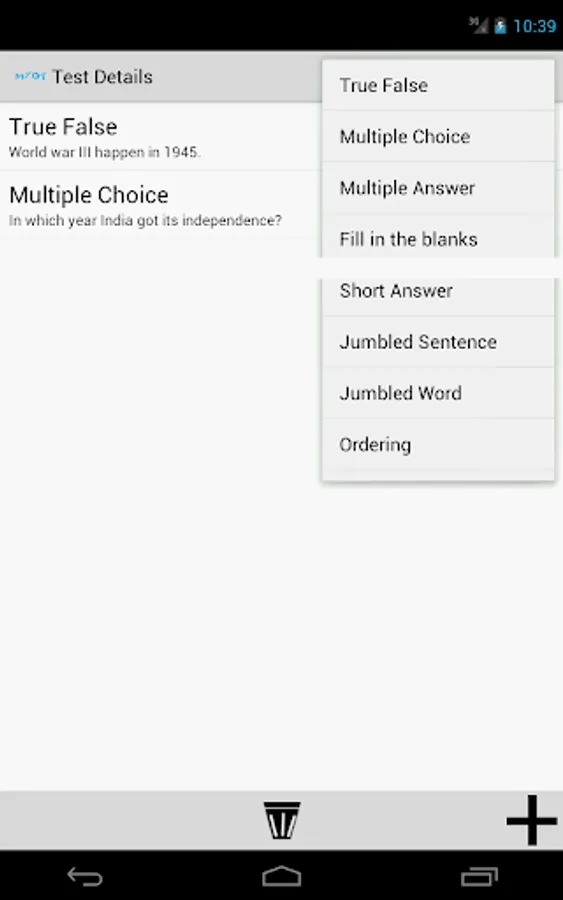Wide range of question type allow you to have very real world experience of the test / quiz and allow you to test skills to all different levels.