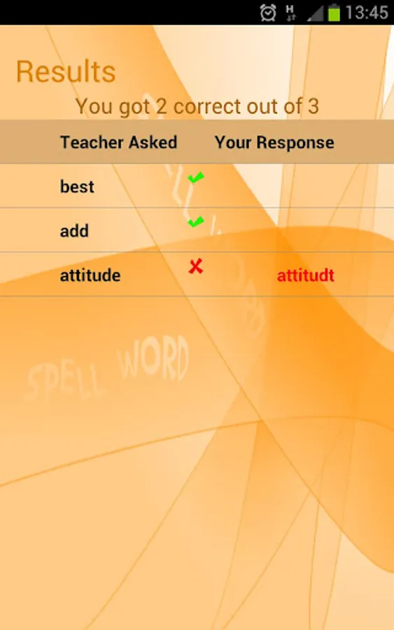8. Teacher can monitor the progress made by students using results. Results are added to list and also to the app level for all the tests completed. Results can be accessed under Teacher section. Results are available on list page for each list and also at words list page for app level.