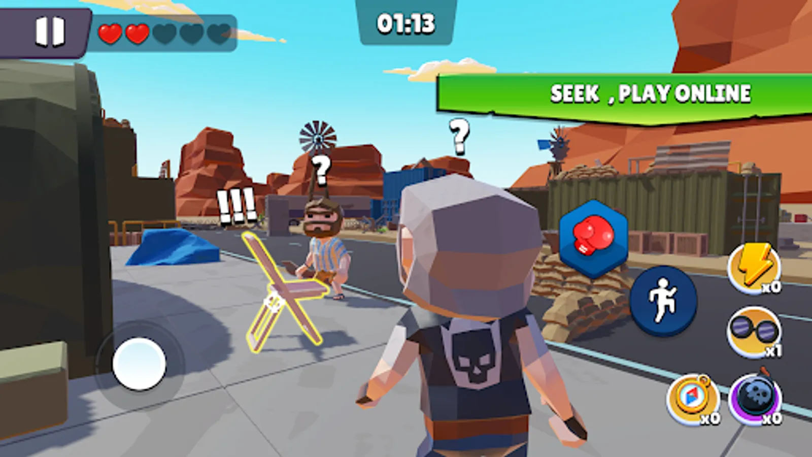 Have fun playing hunt and seek online with your friends or offline with the AI.