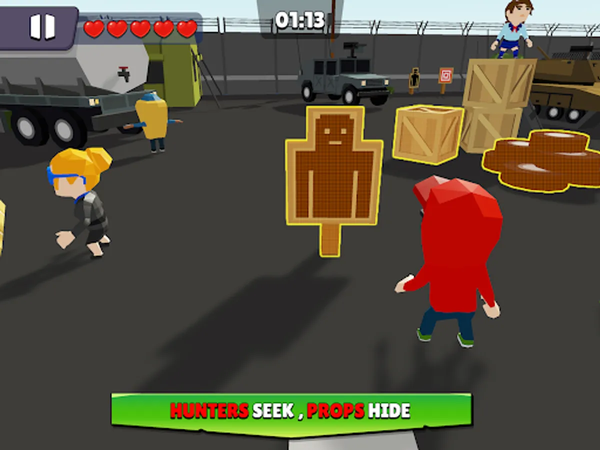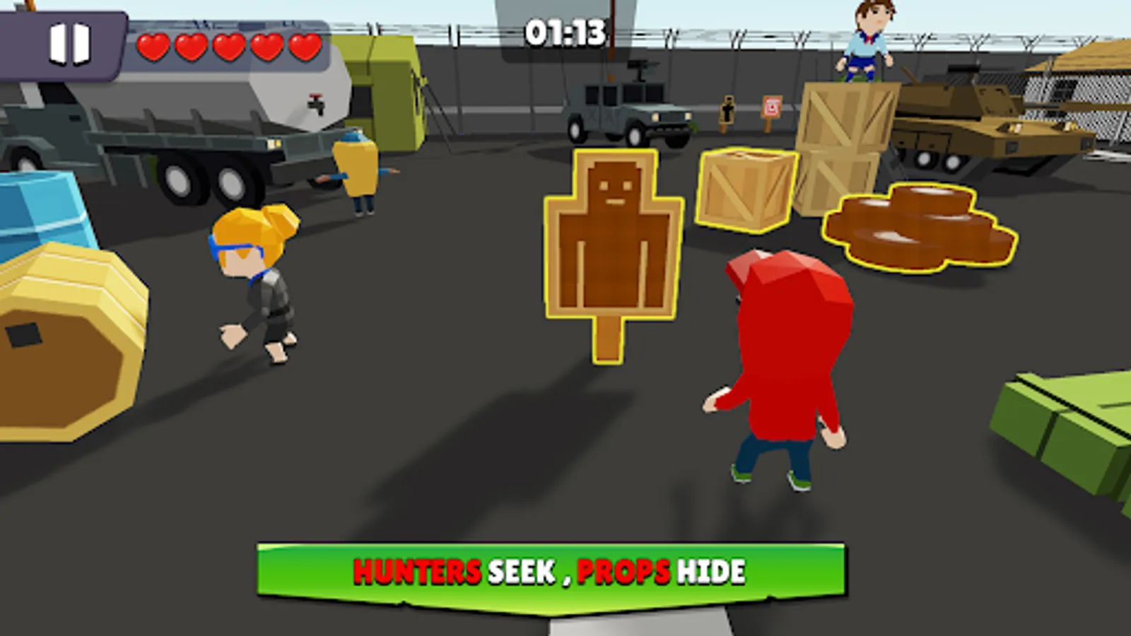 Survive the hunter online or offline! You can be any kind of hidden object to hide as a part of the map from the hunter, or you can be the hunter whose goal is to find, catch, and eliminate other players who can hide on the map as a prop by hitting them once you catch them.