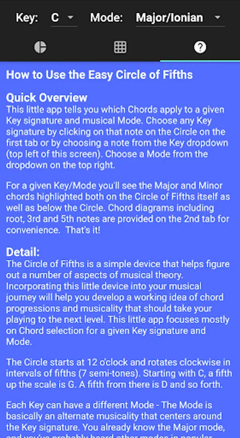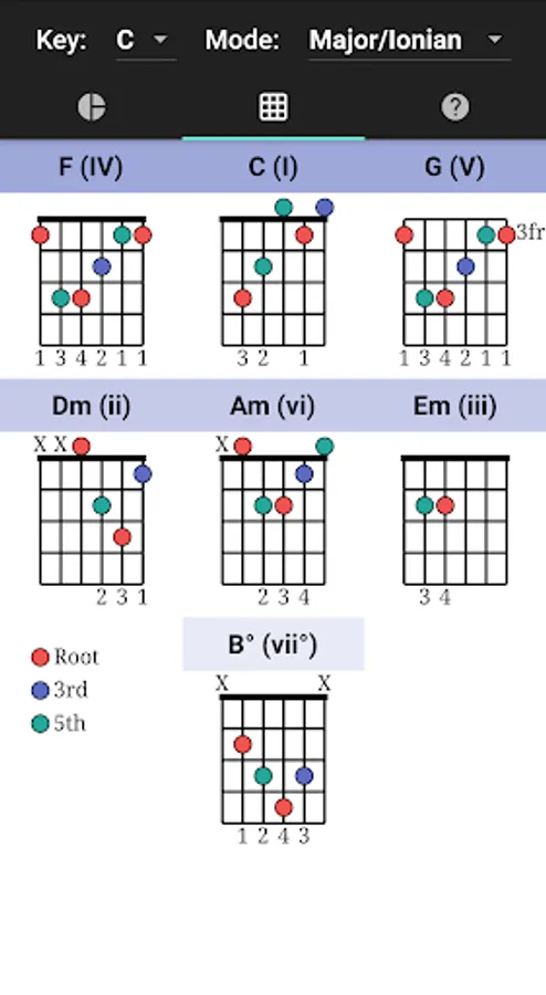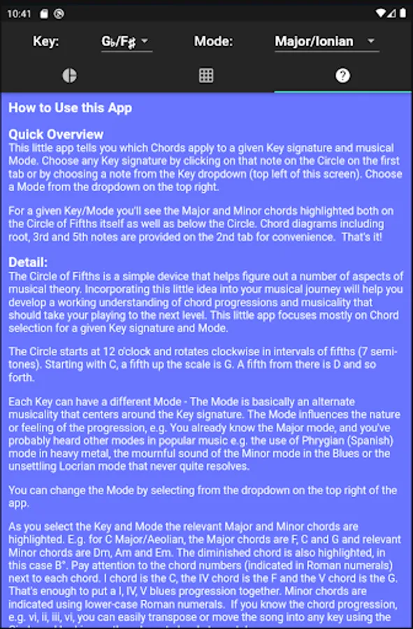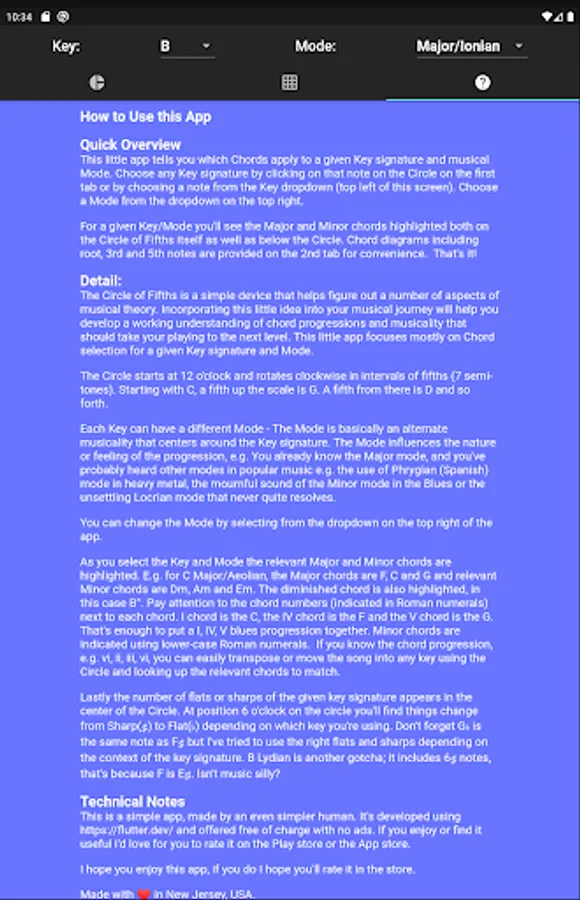 This app implements The Circle of Fifths and allows you to figure out chord progressions (e.g. I, IV, V) in any key, it also helps you understand musical Modes, and offers basic chord diagrams with the Root, 3rd and 5th note highlighted so you can better understand the fret board. This app is aimed at the guitarist who wants to improve their musical theory. It's built with Flutter and offered completely free of charge with no ads.