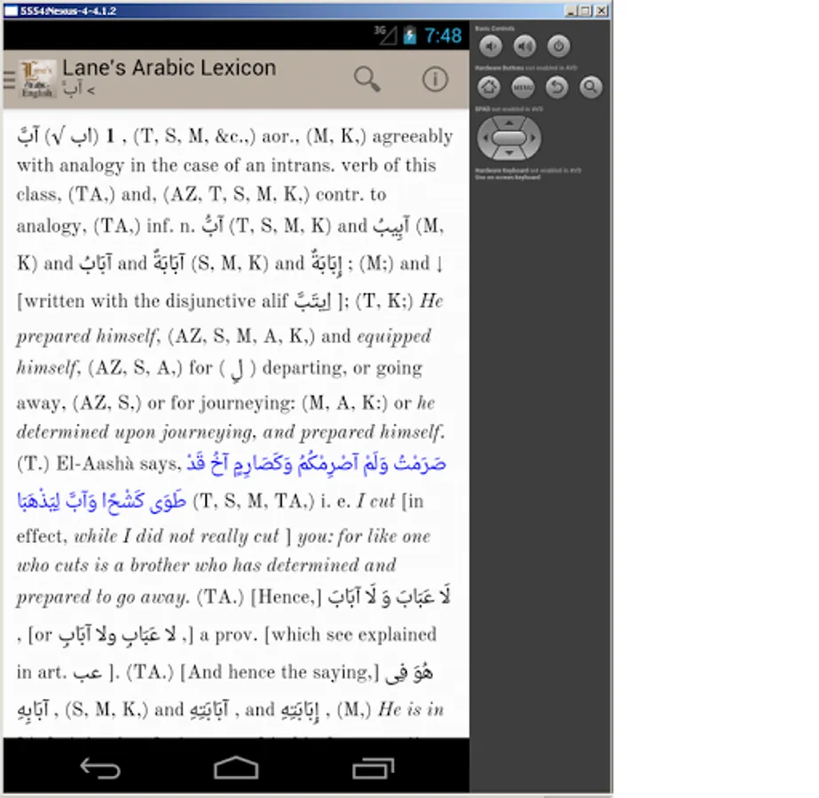 This is an offline fully searchable edition of Lane's classic Arabic-English Lexicon! This is still the largest and most comprehensive dictionary of Classical Arabic available in English and is essential for anyone studying Classical Arabic or the Quran! Features include: