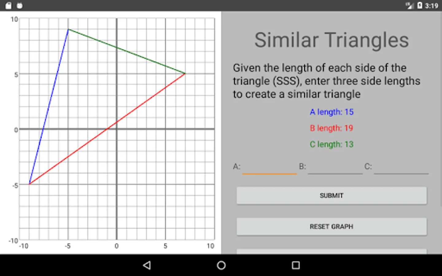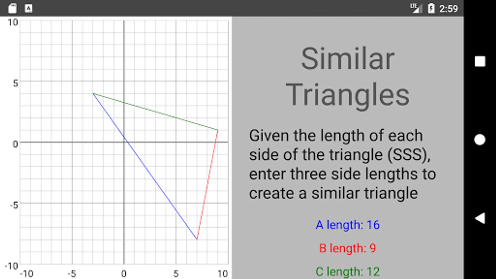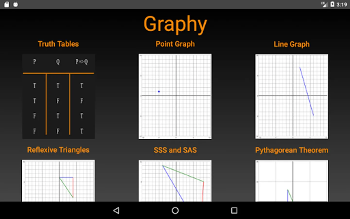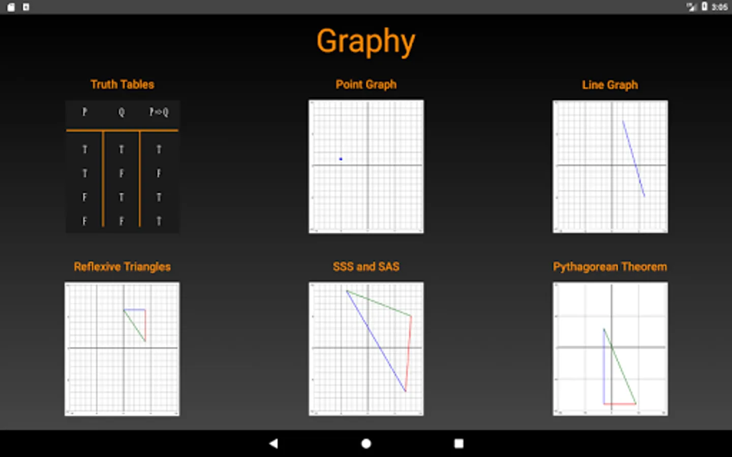 Full description: Graphy is a fun and educational tool meant to reinforce middle school geometry classroom lessons. It’s designed to expose students to an interactive media to gain a better understanding of the cartesian coordinate system and properties of triangles. Concepts such as basic truth tables, points, lines, reflections, SAS & SSS triangles, and the Pythagorean Theorem are covered.