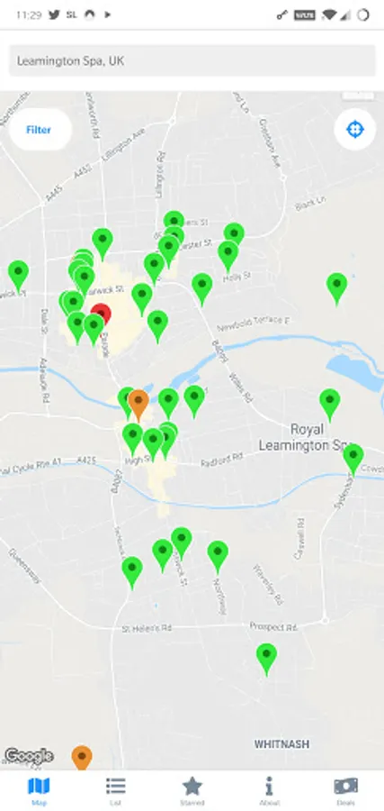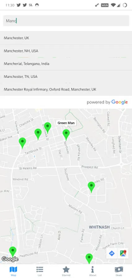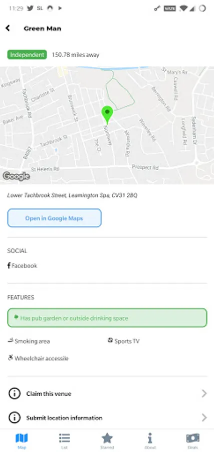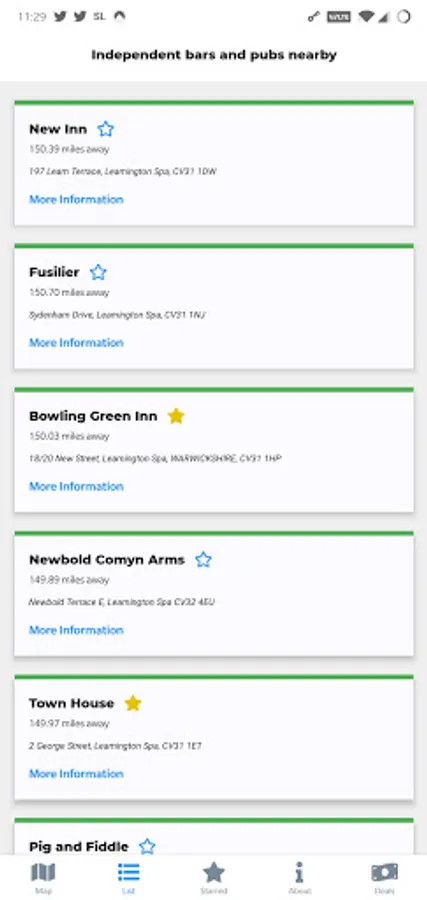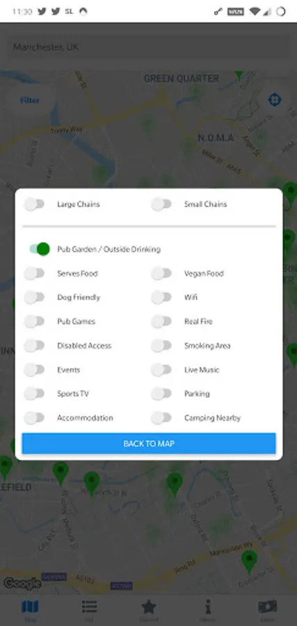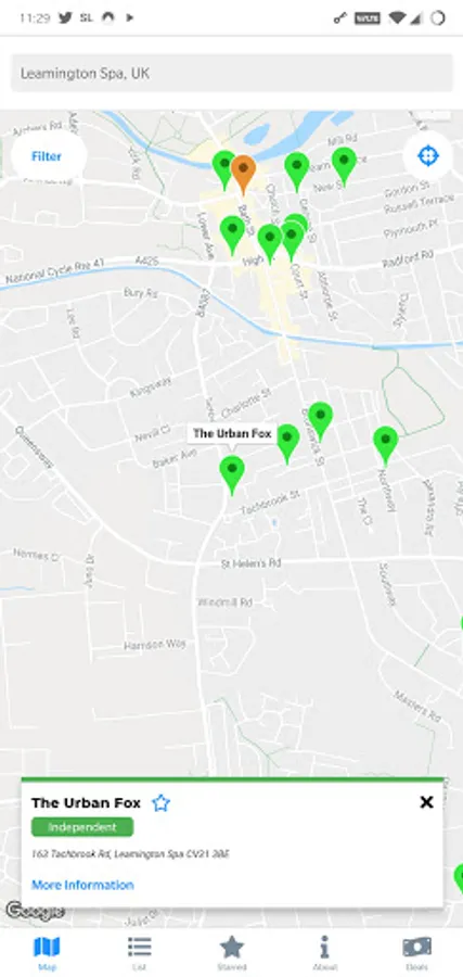 With location switched on you will see venues nearest to you. Green pins are pubs we've identified as independent.