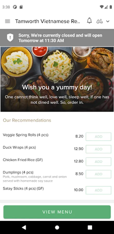 At Tamworth Vietnamese Restaurant we are proud to offer you our very own online food ordering app!