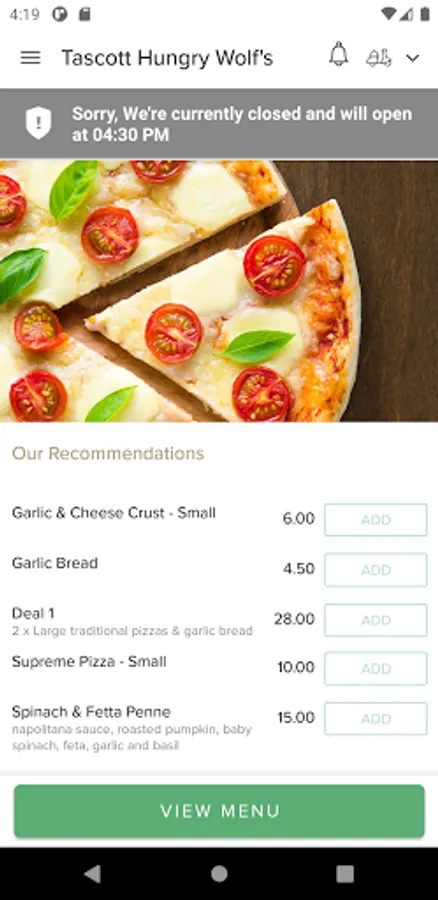 At Tascott Hungry Wolf's we are proud to offer you our very own online food ordering app!