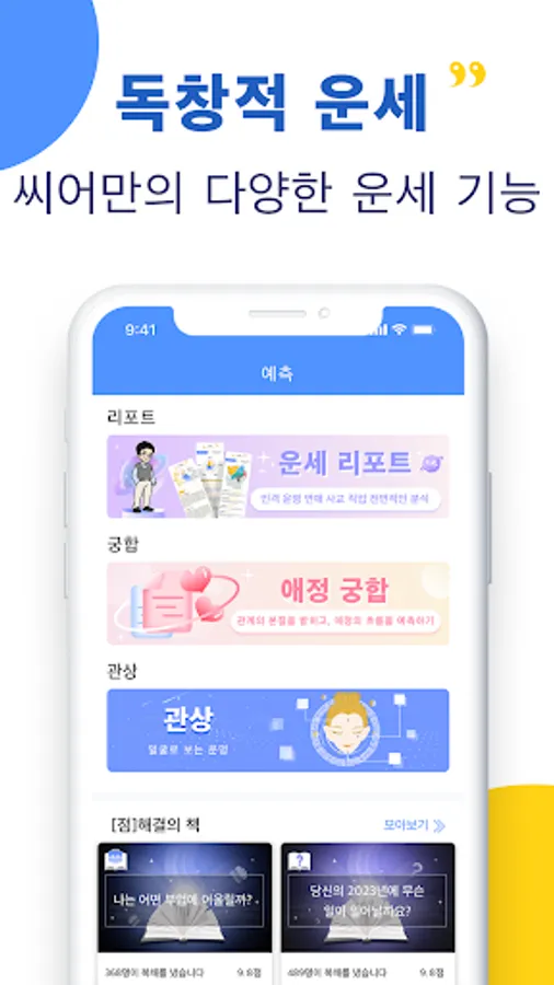It is an app with various functions such as one-on-one consultation, daily fortune-telling, original fortune-telling (horoscope, fortune telling, prediction report, physiognomy, solution book, etc.), media content, and epidemiology classes.