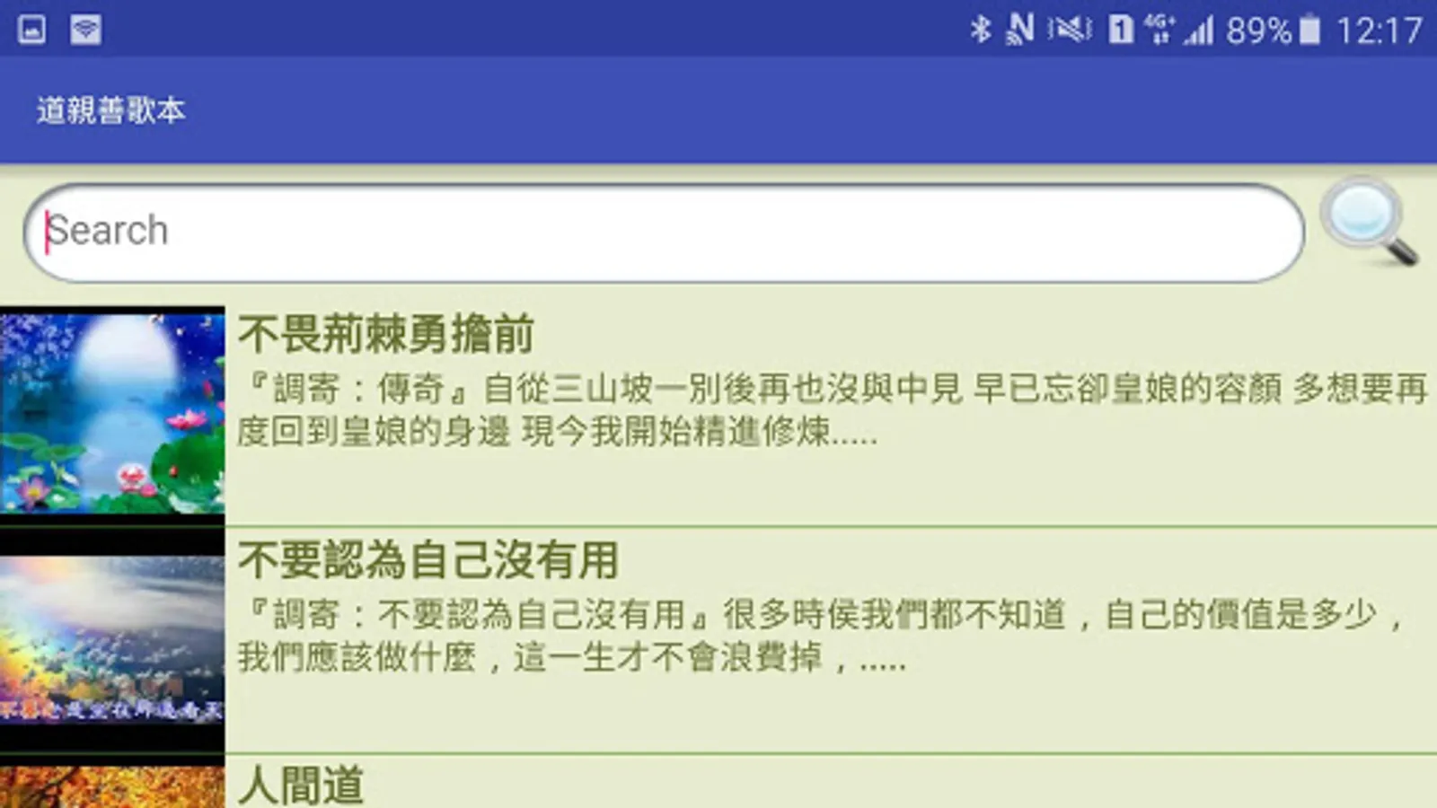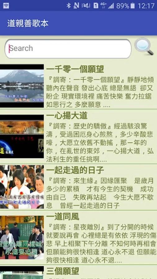 2. The search function can be "Melody", "language send", "certain Buddhas," "Chi training Content", does not require the complete keyword, fuzzy matching and return search results.