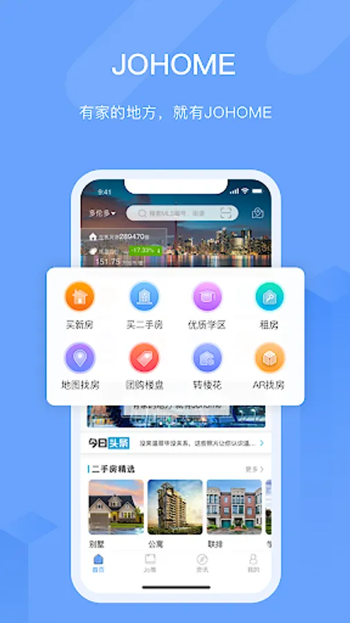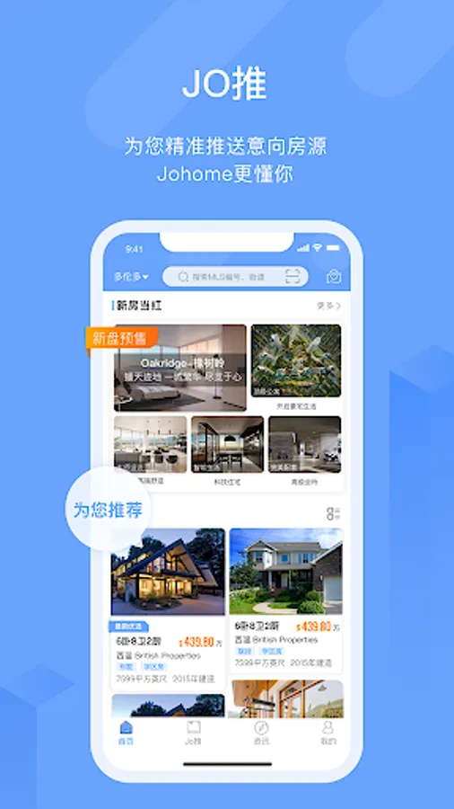 Johome APP is an overseas housing software and real estate platform that integrates the functions of second-hand housing, rental housing, and new housing. We break the information barriers, provide you with market analysis, new real estate information, and inform you of the dynamic information of the housing that you are concerned about, so that you will not miss a good housing!